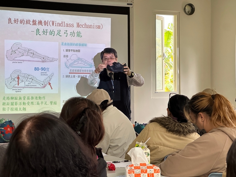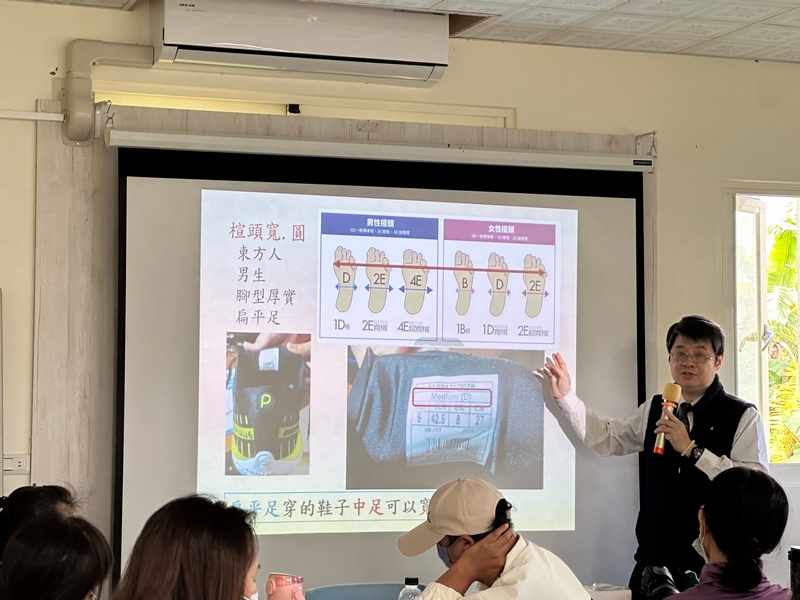 樊志成物理治療師利用他的專業講解「足部評估與問題處理 上」與「足部照顧衛教 上」的內容,告訴我們鞋具如何影響足部,與如何挑選合適的鞋子。