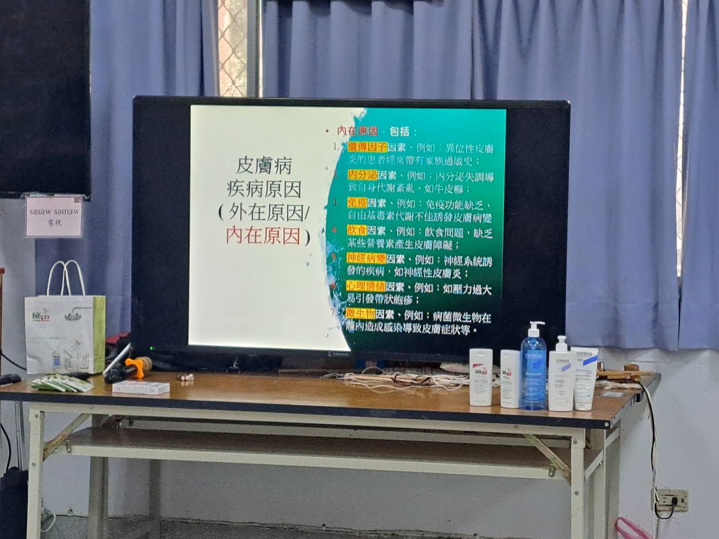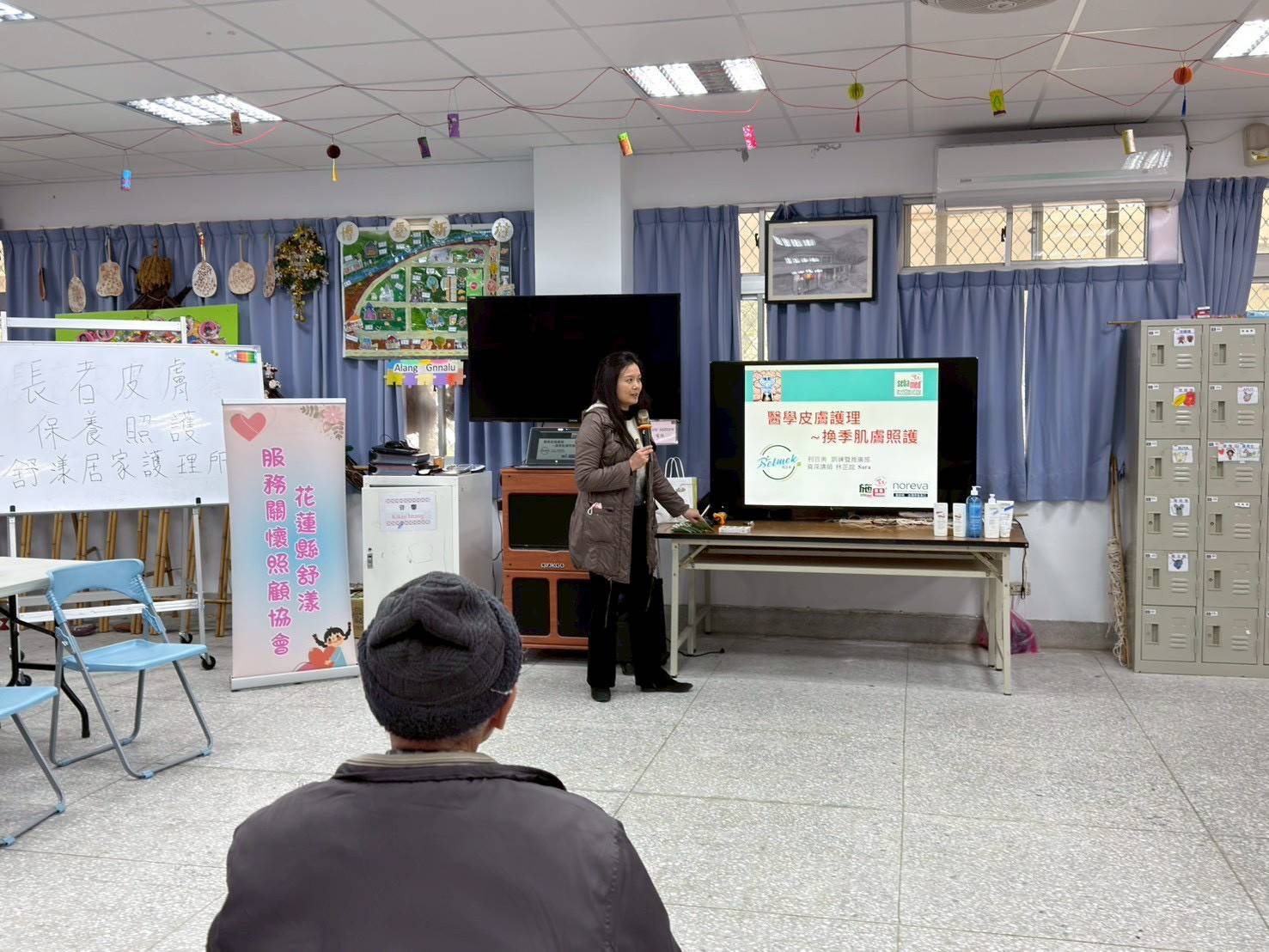 以淺顯易懂的方式說明長者肌膚保養的實用觀念。活動當日文健站長輩參與踴躍,