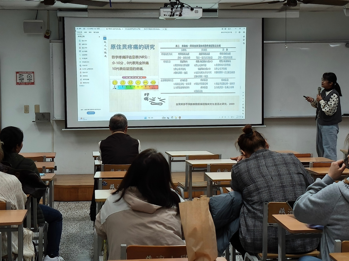下午課程「在多元文化族群社會中 面對文化能力之態度」與「文化安全與原住民族長期照顧」由陳淑珍講師授課。